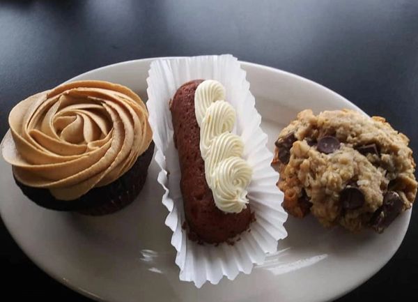 Chocolate cupcake, vinkie, and cowboy cookie (Dessert Specials)
